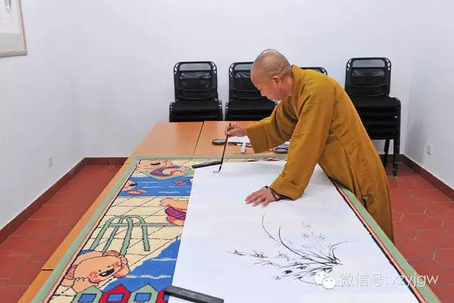2015年10月16日,师父成敬法师做客“勋章”,与徒弟品茶开示并现场作画赐予墨宝。